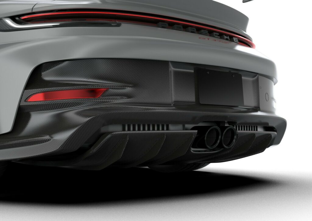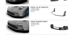Side skirts cost $5,995, side intakes $3,895, a lower diffuser $5,995, and an upper diffuser and rear bumper $12,500 for a full carbon fiber makeover. Even though the GT3 RS is expensive, Porsche doesn't provide a carbon fiber finish for the exterior; therefore, aftermarket companies can fill that need.