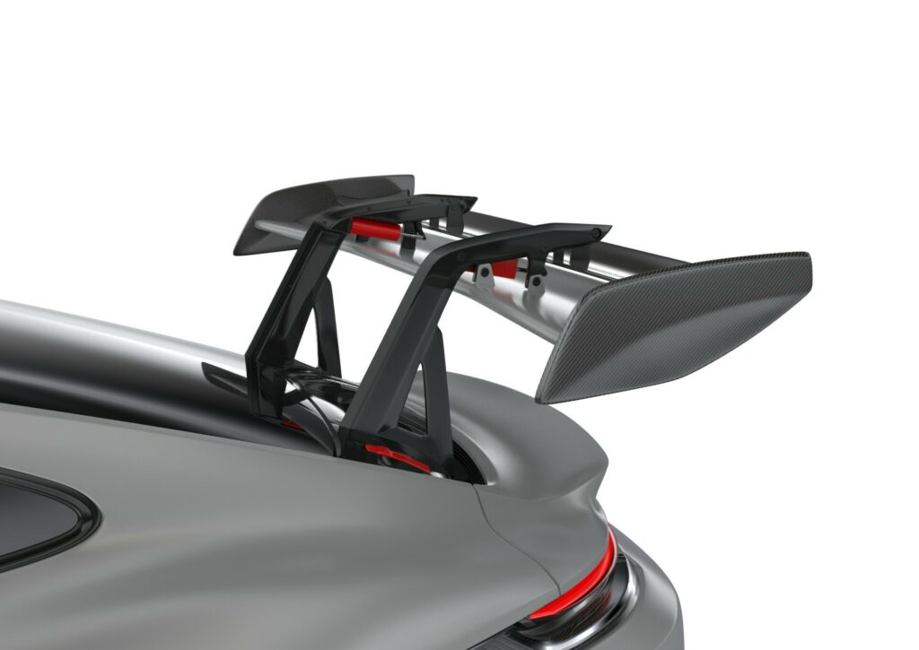 The ultimate Porsche 911 GT3 RS gets a sleek upgrade up front with a $5,995 front lip featuring aerodynamic uprights and a $4,395 carbon fiber bumper insert.