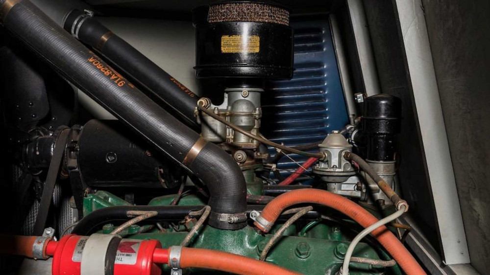 Now compare it to the models with two / four -stroke engines. The Bombardier B-7 is a snow coach powered by a 3.6-liter Ford Flathead V8 engine, delivering up to 90 horsepower. Coupled to a three-speed manual gearbox, allowing the snowmobile's drive system sent to the rear tracks.