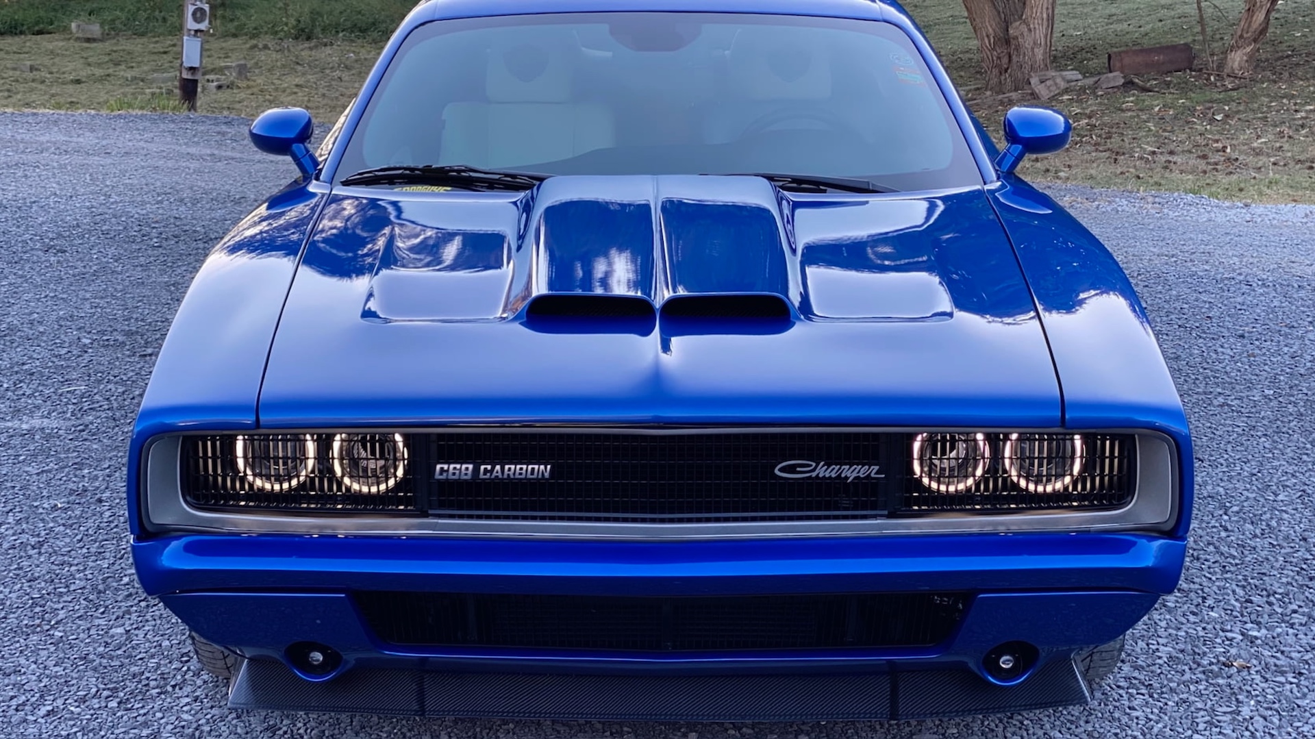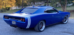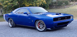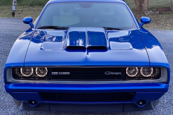 However, the rake of the windshield, the overhangs, and the greater body width set it apart. Aside from that, it retains every recognizable feature of a 1968 Charger, including the rounded taillights, concealed headlights, dual door covers, and buried grille and rear window.