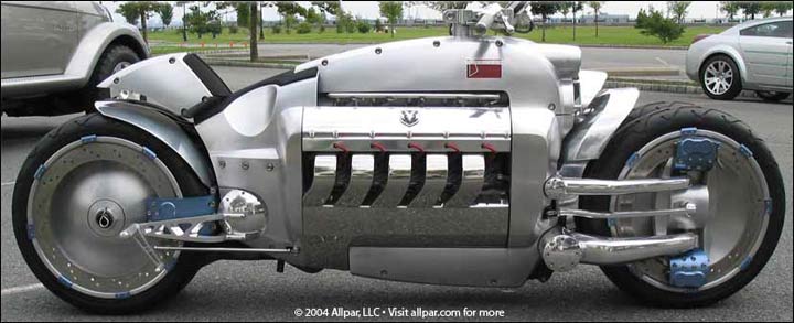 The 2003 Dodge Tomahawk concept car is the one vehicle that is able to turn all of the conventional means of transportation beliefs upside down.