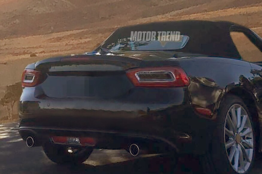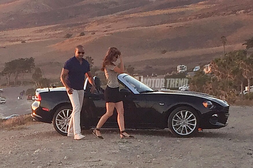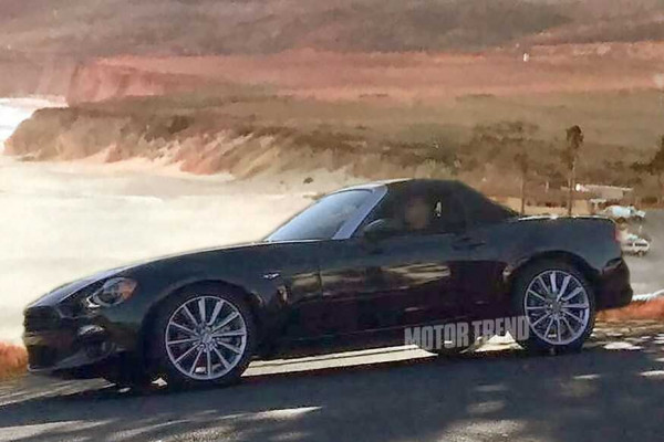 Motor Trend spies have managed to catch the new Fiat 124 Spider in California as it was driving on the streets of Santa Barbara. The spider is based on the 4th gen Mazda Mx-5 Miata and features longer front, rear overhangs, and a more square style than Mazda. It also has smaller headlights and horizontal taillights which differs from the ones on Fiat 500.