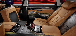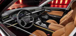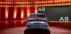 New wheel styles are ranging from 18 to 21 inches and also a new color scheme with metallic and matte treatments. The digital OLED taillights are now standard and have a proximity indication feature that illuminates them when another vehicle approaches a stopped A8 from behind within 2 m (6.6 ft).