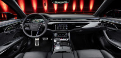 The Biturbo 4.0-liter V8 in the S8 performance flagship produces 563 hp (420 kW / 571 PS) and 800 Nm (590 lb-ft) of torque. It takes 3.8 secs to go from 0 to 100 km/h (0 to 62 mph). The S8 has anticipatory active suspension, a performance differential, and dynamic all-wheel steering in addition to the basic Quattro system.