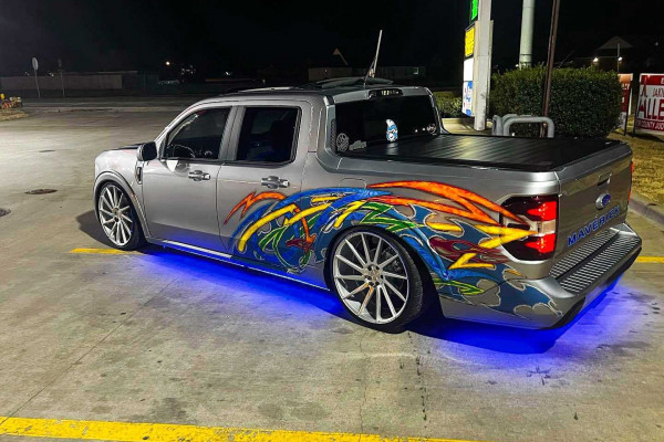 Some Maverick enthusiasts, on the other hand, have opted for a more street-oriented look. So goes Kenneth's bagged truck, which has 22-inch Asanti wheels, body-color fender flares, and bright artwork. Additionally, his truck has diamond-quilted leather seats and a unique music system.