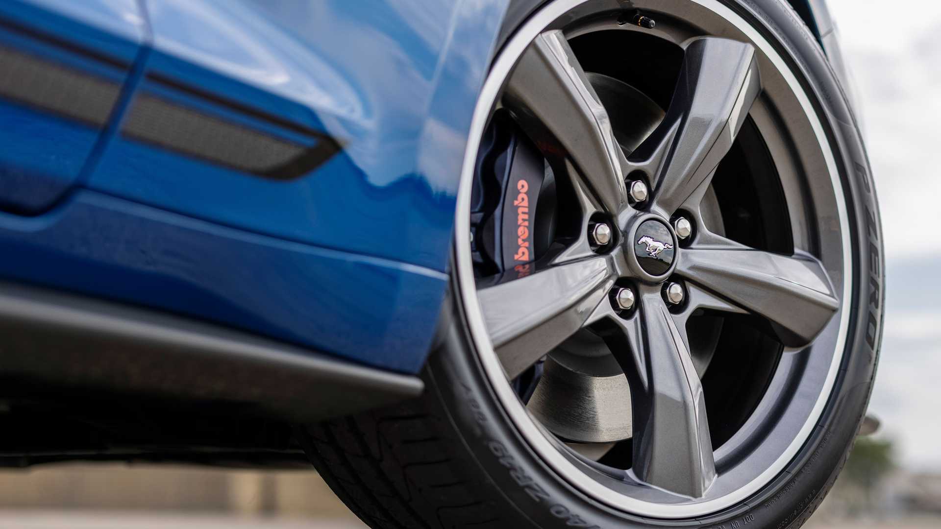 The GT Performance Package for the California Special is another significant new feature for the next model year. It includes a Torsen limited-slip differential and Brembo six-piston brake calipers to the front axle of the Mustang GT Premium fastback and convertible. The track-ready equipment includes a larger tubular rear sway bar and heavy-duty front springs, as well as upgraded stability control and electric power steering.