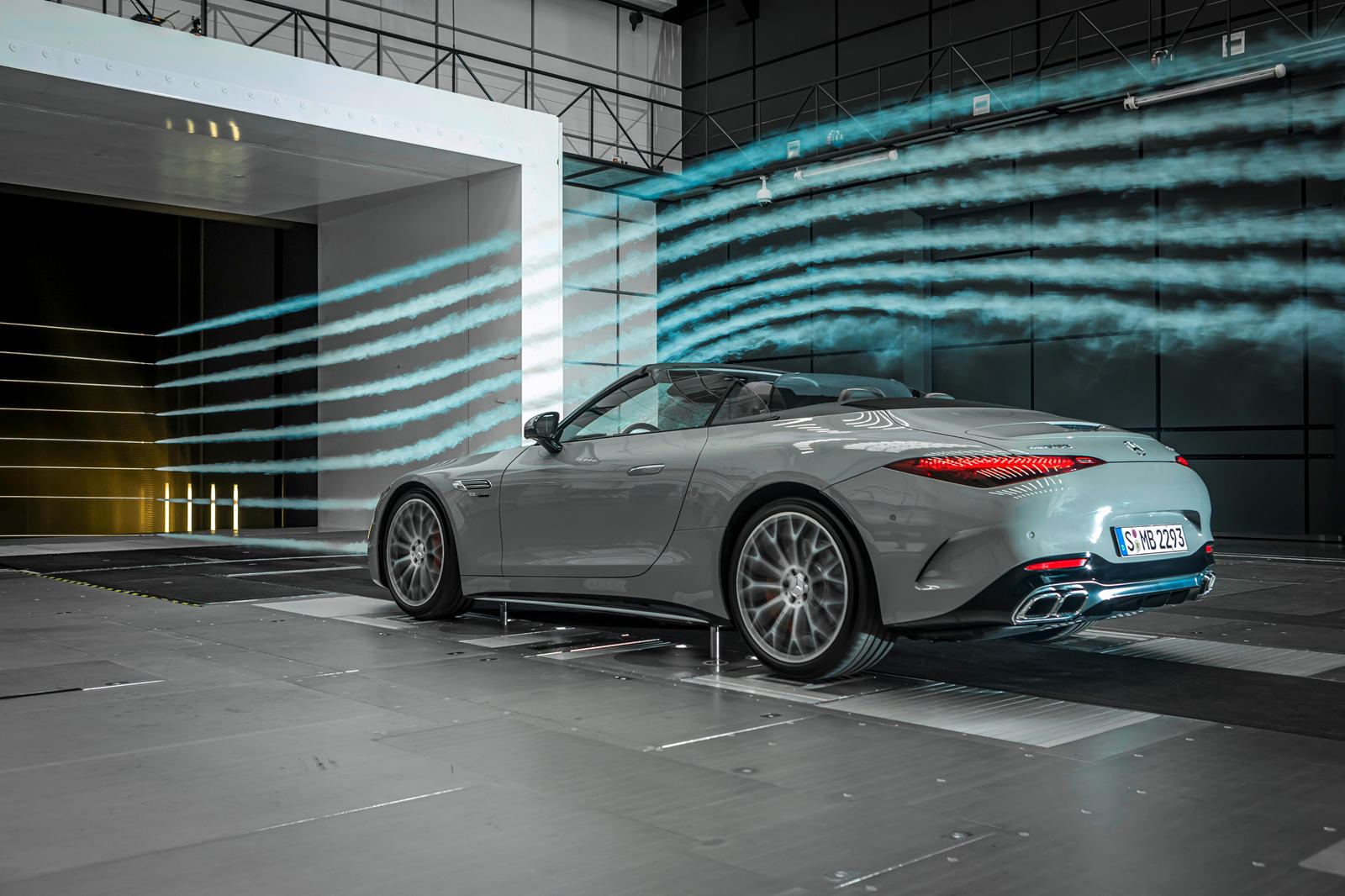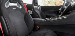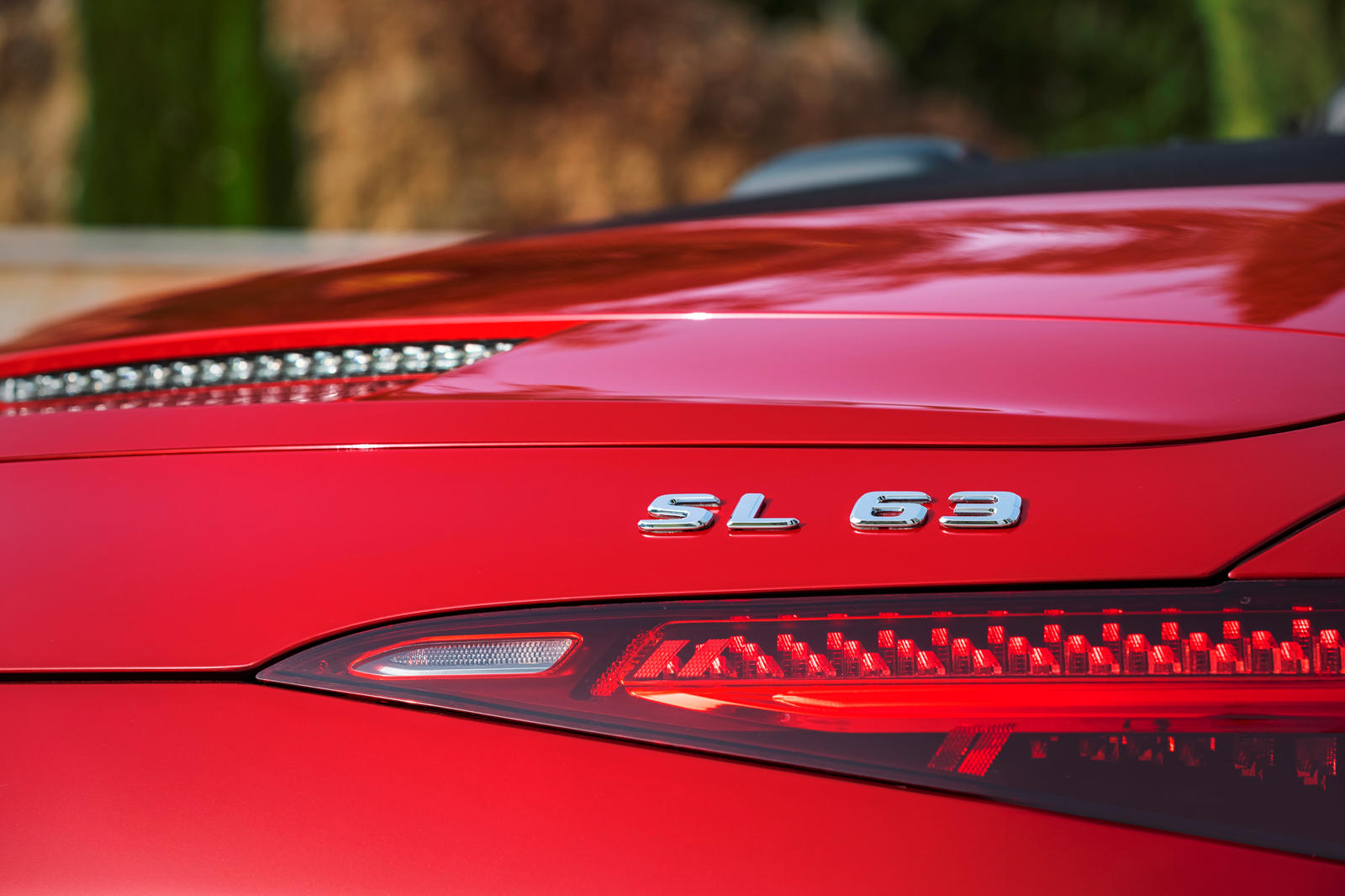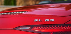 With its long wheelbase, broad hood, convertible roof, and angular rear end, the SL retains its familiar overall look. The redesigned AMG radiator grille, angular headlights, and slender taillights that taper to the wheels instantly transform this design.