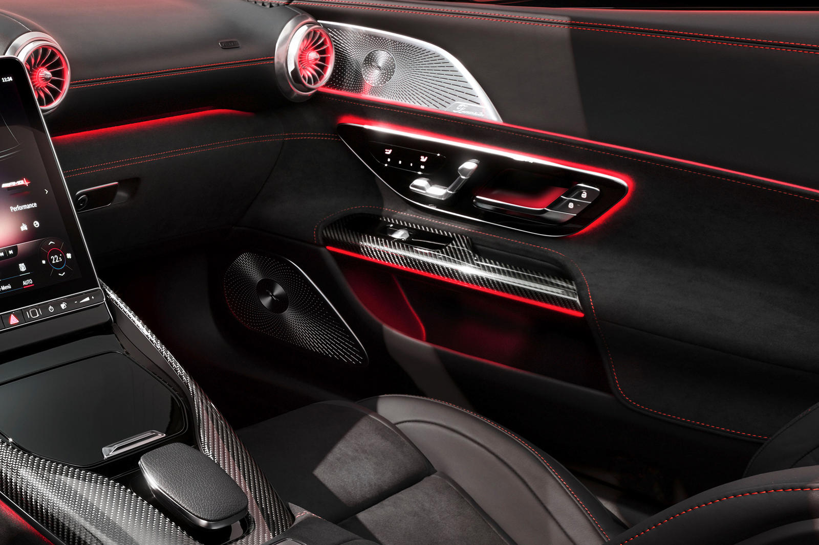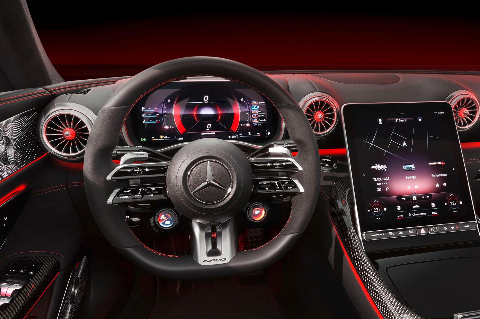 The inside of the new 2022 AMG SL was influenced by the 300 SL Roadster. Its cabin style is not just driver-centric; the harmonious instrument panel, which boasts a high-resolution 12.3-inch LCD screen, was strongly influenced by aviation. The redesigned galvanized turbine nozzles, which appear to be modeled by airplane turbines, are another smart move.