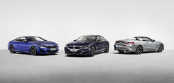 As a tribute to the 50th anniversary of BMW M, the M850i models get aerodynamically tuned M mirrors and iconic BMW Motorsport insignia mounted to the hood, trunk, and wheels. As a tribute to the 50th anniversary of BMW M, the M850i models get aerodynamically modified M mirrors and iconic BMW Motorsport insignia mounted to the hood, trunk, and wheels.