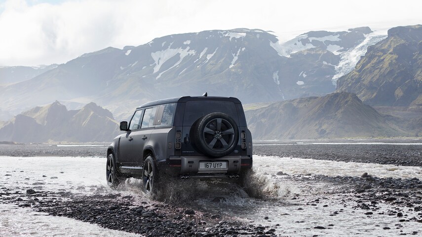 Defender V8 seen below already has four-cylinder, V-6, and V-8 models, but the upcoming SVR will add more horsepower, sharper styling elements, and special suspension tuning to provide the best street appearance.