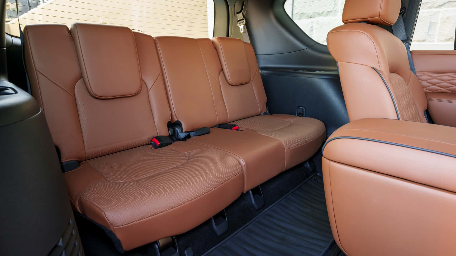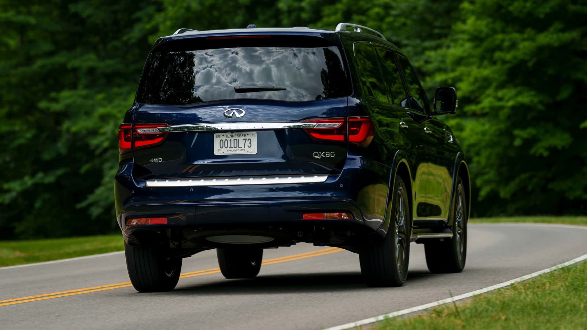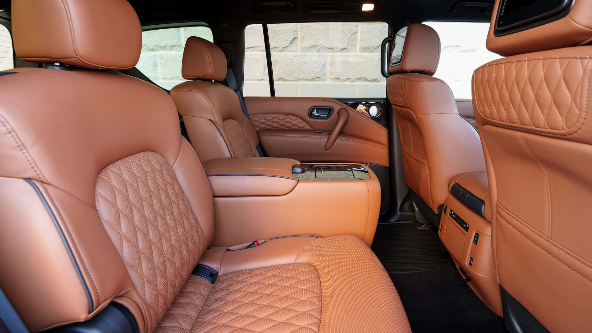 This SUV sticks with the body-on-frame design. Two-wheel drive comes standard across all trims, but if you prefer, you can opt for four-wheel drive. Moreover, the 2024 QX80 is generously equipped with a bunch of standard driver-assist systems like automatic emergency braking, blind-spot and lane-departure warnings, backup collision prevention, and more.