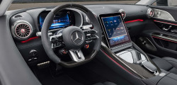 The new GT has undergone some significant changes, embracing a two-plus-two interior layout for added practicality. It's loaded with tech goodies, including a 12.3-inch instrument panel, an 11.9-inch infotainment screen with AMG-specific features, and various driving modes. It also features rear seats suitable for kids.