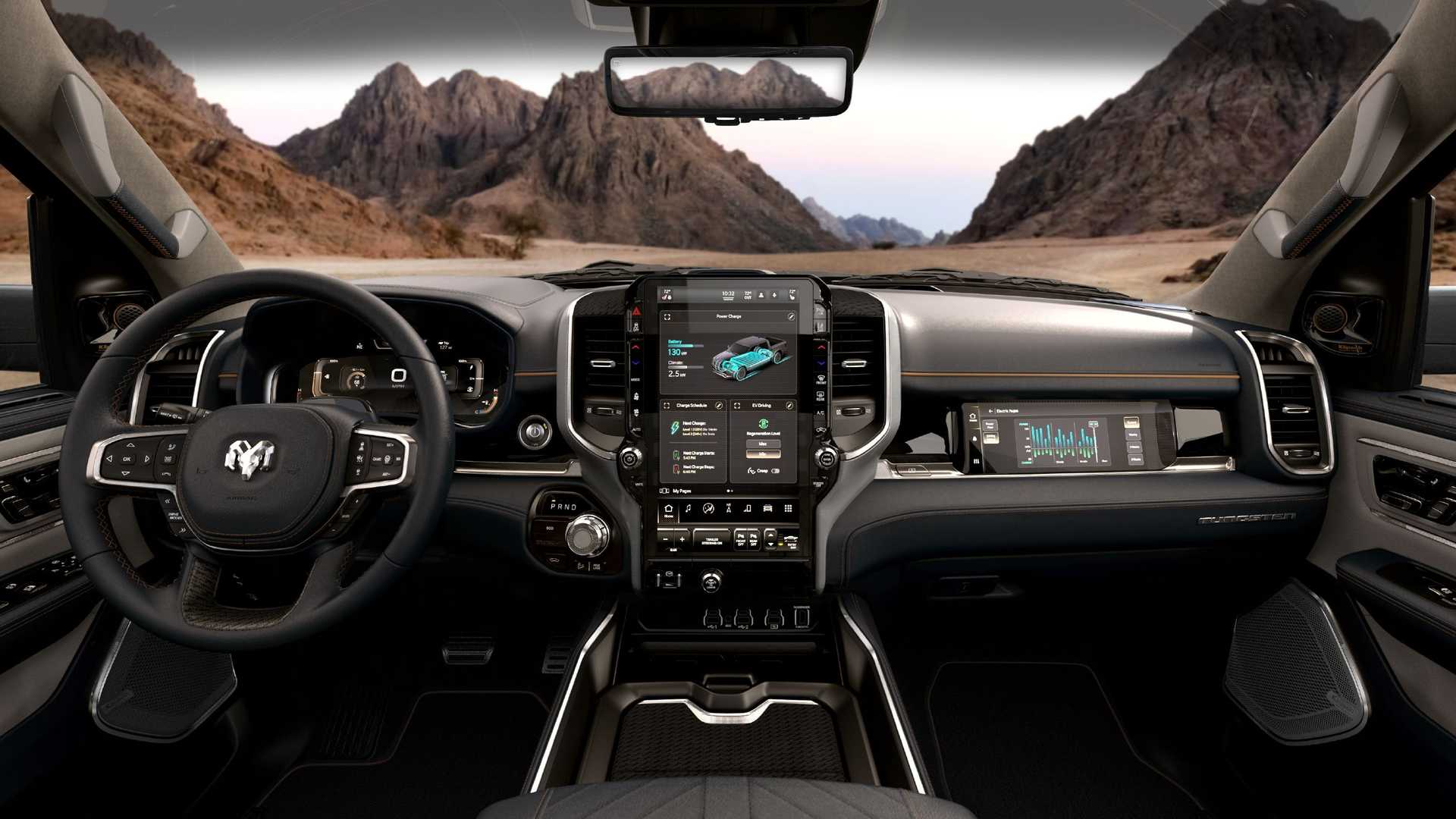 The vehicle is able to charge at speeds of up to 350 kilowatts using 800-volt DC fast charging. In other words, it can get almost 110 miles of range back in only 10 minutes. The 2025 Ram 1500 also features a bidirectional charging system that allows for charging from vehicle to vehicle, vehicle to house, and vehicle to the grid.