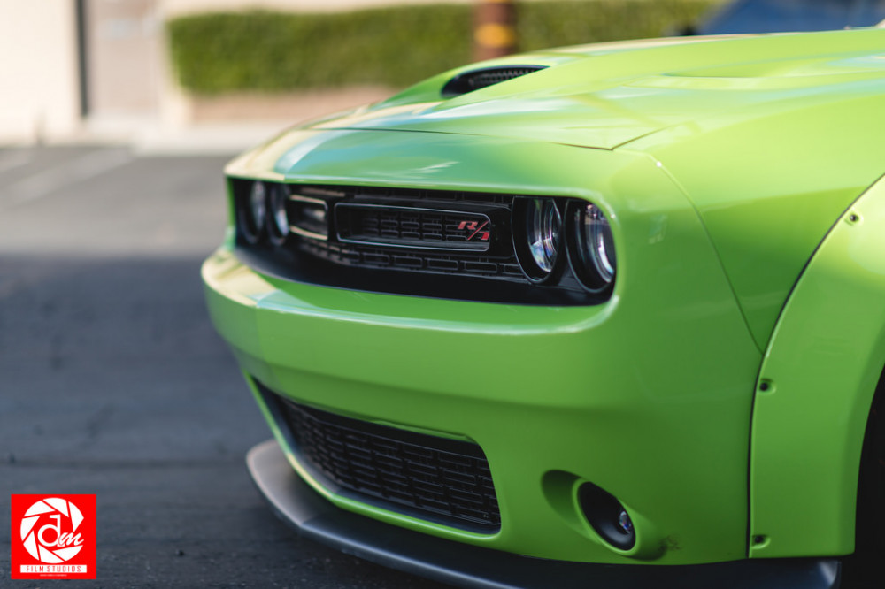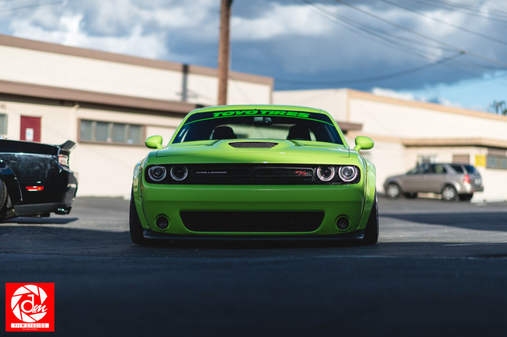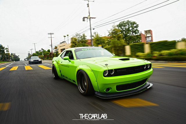 But this car is not about brute power, but about intimidating looks. And this Hellcat has done his job very well. First of all, it has a Liberty Walk kit. Then, it has a completed pack with a set of 20-inch wheels, Rotiform Concave LVS, wearing Toyo tires. Next, it has a suspension system with adjustable ground clearance, a Hellcat hood, a short shifter, a roll-bar, and some other fear-inspiring details.
