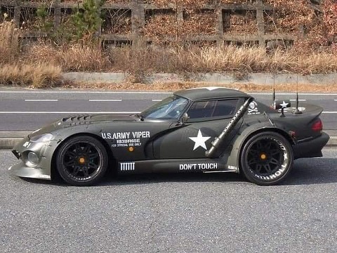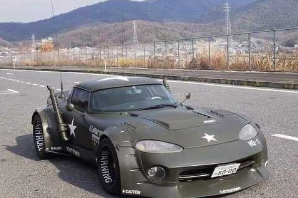 A unique Dodge Viper appeared on the streets of Japan and it’s a crazy one. A vehicle with 6 wheels, painted in khaki green with U.S. Army stickers on the exterior. It was first spotted in 2017 and now it reappeared now with additional modifications.