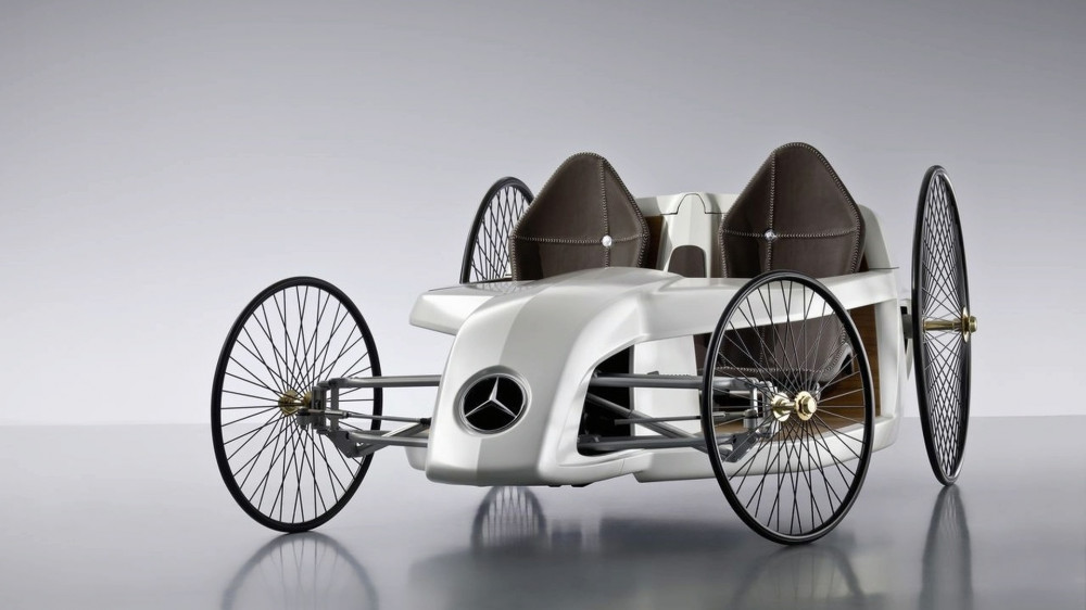 The exterior design of the car is a blend of a multitude of cars from different eras. The impressive spoke wheels imitate the Benz Patent Motor Car from 1886. The elegant nosecone is repeating the modern Formula 1 cars.