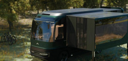Prioritizing sustainable living, the eTH incorporates retractable solar panels that generate 25 kWh of clean energy. Due to a presumably sizable battery pack, the EV can function off the grid for up to 7 days. The Atmospheric Water Generator system adds another environmentally conscious touch by collecting moisture, yielding a daily supply of up to 50 liters of clean water.