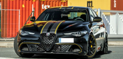The Giulia Quadrifoglio's outside has also been refreshed, with matte black racing stripes and yellow highlights. The front fascia and rear diffuser have additional yellow embellishments. Manhart is expected to produce only ten versions of this unique Alfa Romeo Giulia Quadrifoglio, each costing €119,500 (about $139,000).