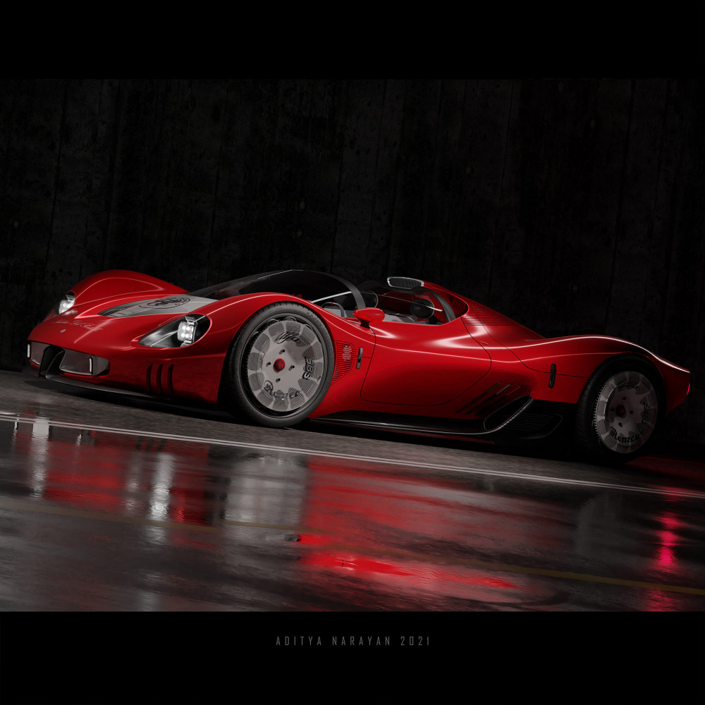 The car was constructed to mark Alfa Romeo's 111th anniversary and was designed by CarScoops reader Aditya Narayan. This is an Aditya Narayan design study that is neither affiliated with nor supported by Alfa Romeo. It refers to a number of Alfa Romeo race vehicles from the 1960s, including the Tipo 33 Periscopica from 1967.