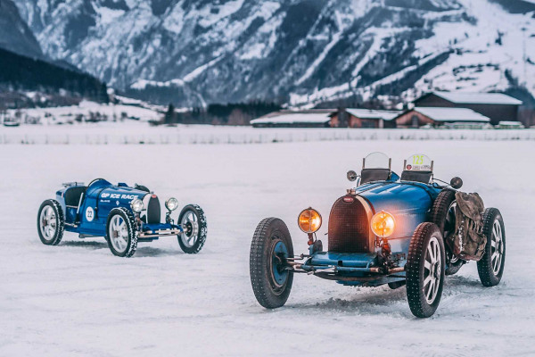 The original Bugatti Type 35, on which Bugatti Baby II is based, began the 1960 event accompanied by two motorbikes and a low-flying jet. There were no spectators at this year's event in Zell am See, Austria, called ICEolated, because of the pandemic, but the automotive hardware nevertheless showed up.