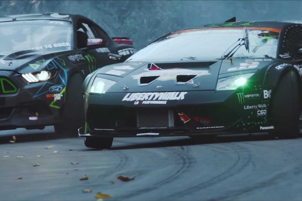 We're sure you have important things to do right now, but please stick around and you'll thank us later. You will see an amazing drifting race between a Lambo Murcielago and Ford Mustang
