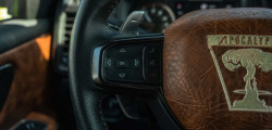 The 4x4 Super Truck's interior is dressed to impress with weatherproof, rustic brown leather inserts that are both fancy and tough. The end-of-the-world logos can be spotted on the dashboard instruments, steering wheel, and even on the passenger side. Looking for a vehicle that can conquer mountains and impress your neighbors? Look no further than the 4x4 Super Truck, now available for the "low" price of $159,999.