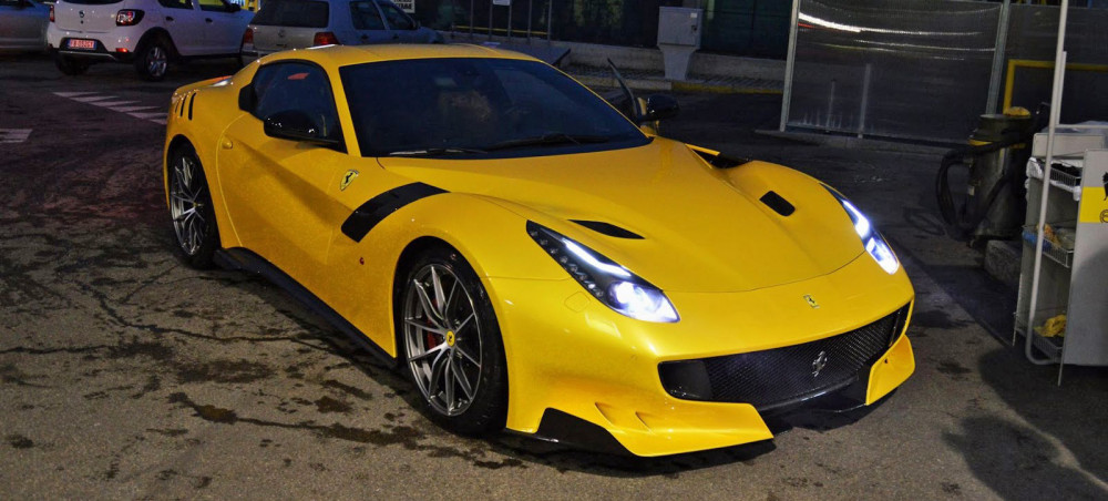 Guess what, the F12 TDF looks even better on the road. There is exactly where the photographer Florian Schulz spotted the 770 hp wild beast. Interestingly, it features the same yellow/black accents as the F12 TDF from the official promo images.