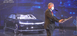 The Model E is the quickest of the three electric automobiles on display. Its design was created in collaboration with the Italian firm Pininfarina, and it measures 5,100 mm in length and 3,100 mm in width, with a 748 hp powerplant. The 0-100 km/h sprint here takes 2.8 secs, which is comparable to the Porsche 911 and McLaren 765LT Spider. The claimed range is 750 km.