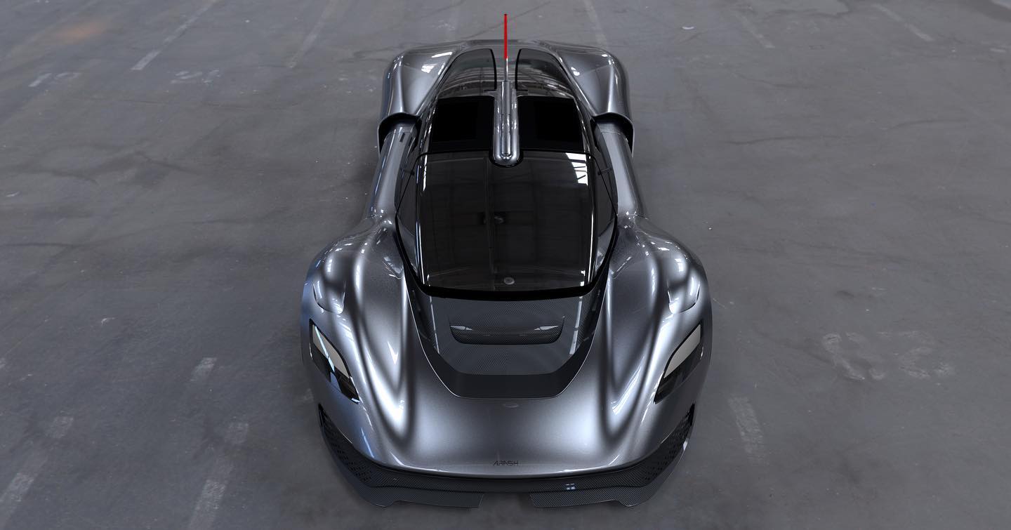 The absence of standard wing mirrors, a huge shark fin that spans over the top and decklid, and a full-width LED light bar at the rear are all notable design characteristics. Arash also shared a rendering of the car's interior. It looks to have seats sculpted directly into the monocoque. Two small displays that will substitute the wing mirrors, as well as a compact instrument cluster attached to the steering column, are also visible.