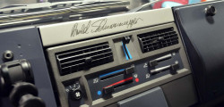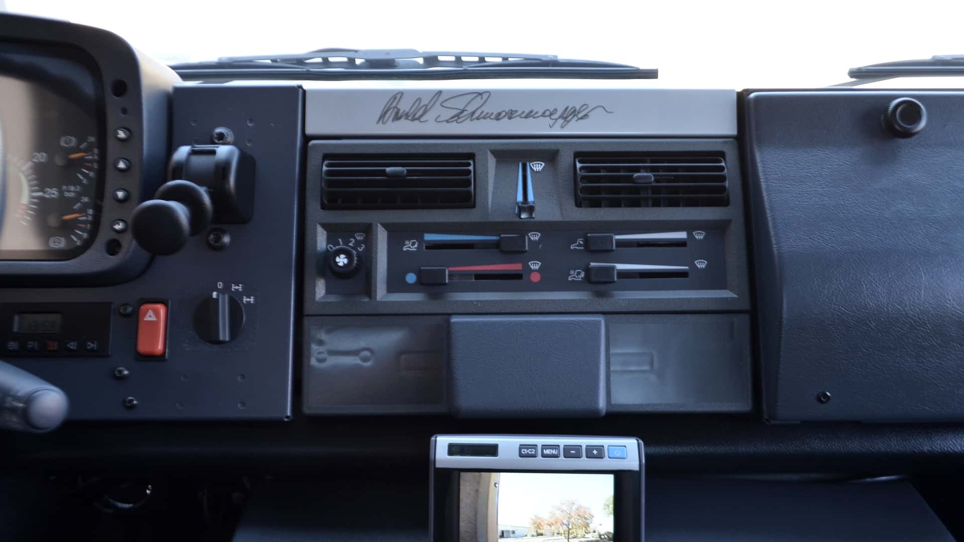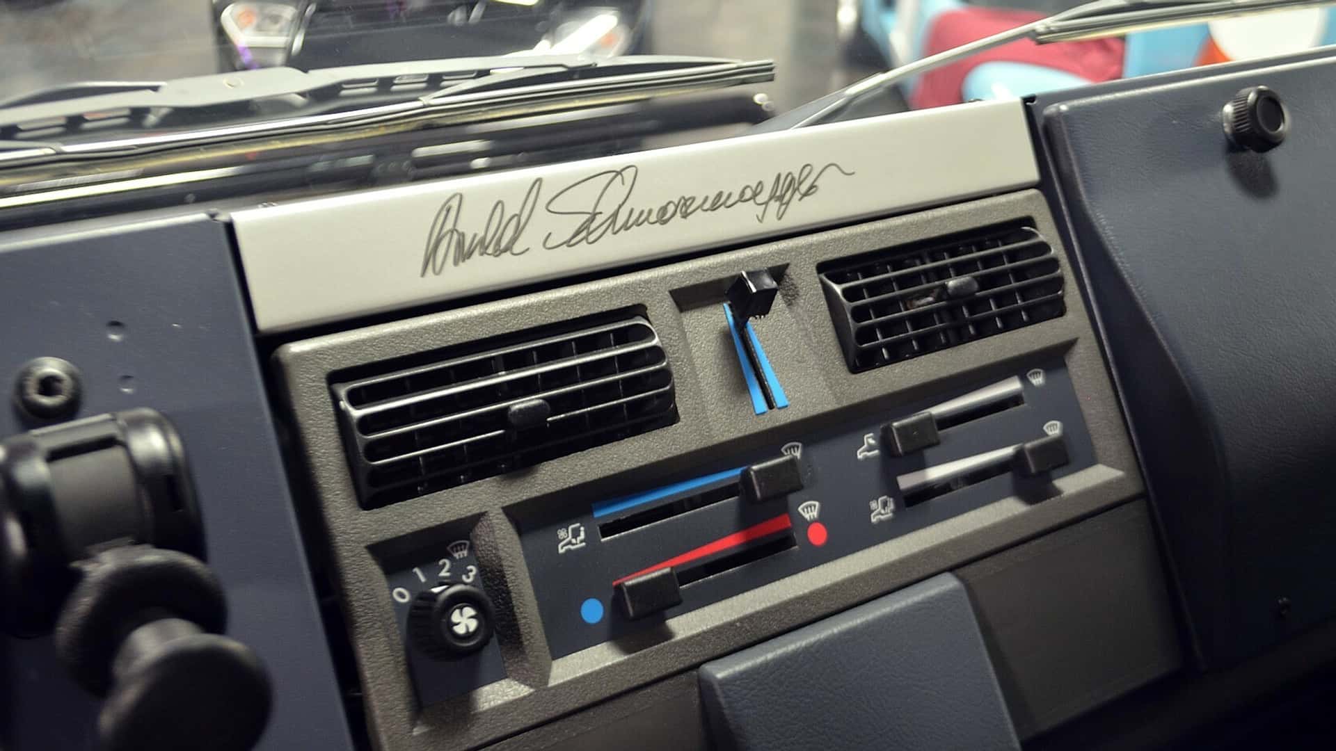 The truck boasts an enhanced interior with leather-trimmed seats, a rear-view camera system, and a Blaupunkt stereo. Schwarzenegger's autograph on the dashboard adds a personalized touch. The exterior exudes opulence with a substantial front brush bar featuring attached spotlights, additional lamps in the bumper, and a winch for tackling challenging terrains.