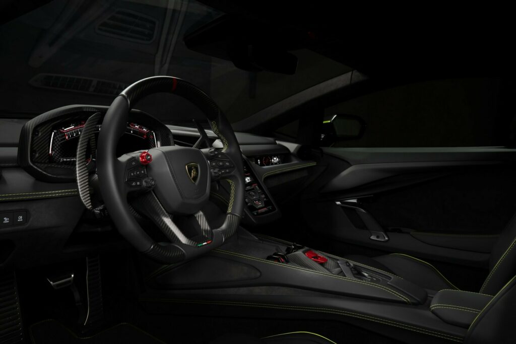 Lamborghini Arena 2024 is stitched into the bulkhead lining, which also incorporates an embroidery of the Imola Circuit. 'Lamborghini Arena 2024' and 'Ad Personam' insignia are adorned on distinctive carbon fiber panels that Lamborghini has installed on the dash panel. We really love the one-of-a-kind Revuelto, but Lamborghini hasn't said if it will be for sale.
