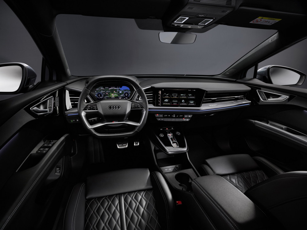 More thorough range figures for the dual-motor Q4 models will feature all-wheel-drive systems only when extra power or traction is needed. The interior brings an audio typical stylish and modern with a 10.1-inch touchscreen display, a 10.25-inch digital instrument cluster as standard, and an optional screen 11.6-inch display. Audi offers driver-assist and navigation information with an augmented-reality display, and the Sonos sound system is available.