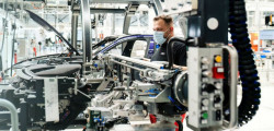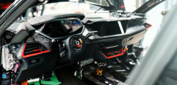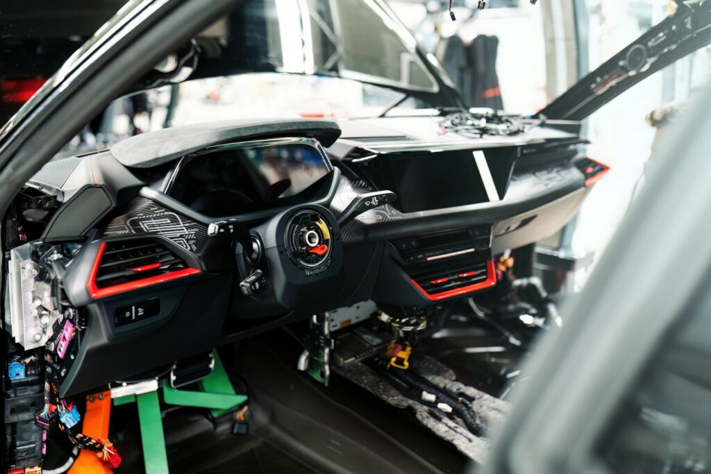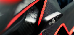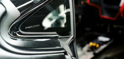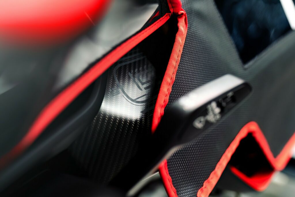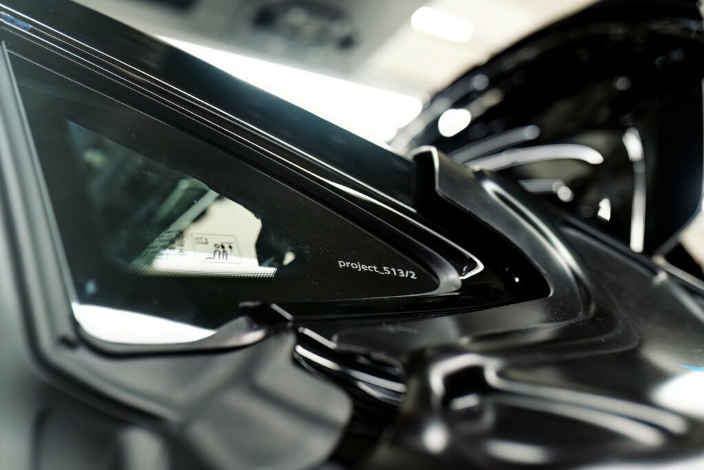 Interior details that maintain the vehicle's edgy design may be seen in the form of red highlights on the steering wheel, door panels, and floor mats. You can also spot the "project_513/2" embossed armrest and the two-tone Nappa leather sport seats. The vehicle is also equipped with power steering plus and rear wheel steering, which allows the rear wheels to swivel up to 2.8 degrees.