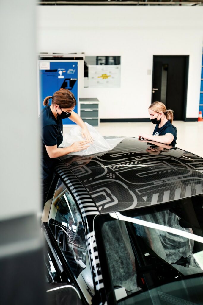 A prototype RS e-tron GT with a striking wrap was shown by Audi a few years ago, and now the vehicle is giving birth to a limited edition vehicle called project_513/2. The model has a striking appearance with red highlights and an e-tron camouflage design, and it will be available for purchase in the United States only. This Audi is also the first to include red rings.