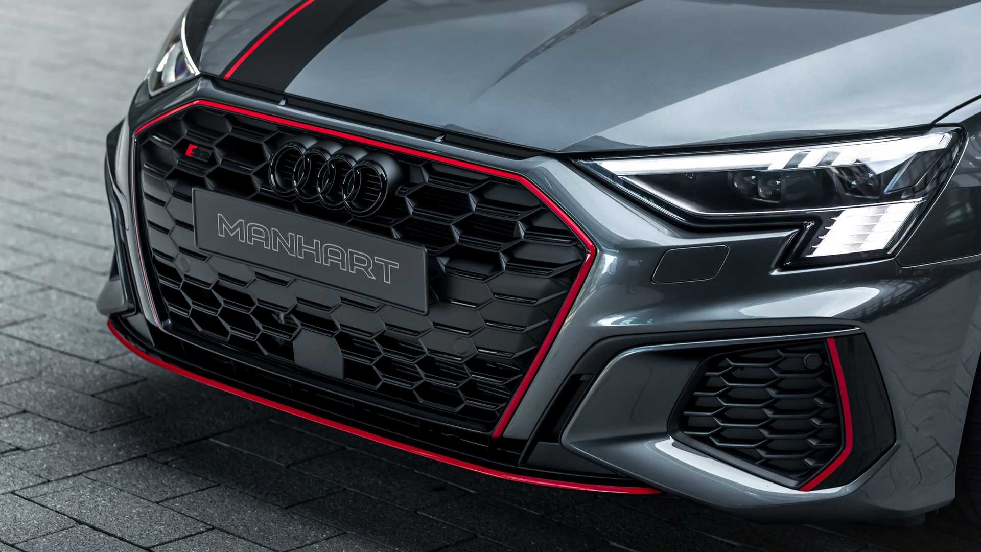 Manhart installs a new intercooler, a carbon fiber intake, a stainless steel exhaust obtained from Remus, and a remapped ECU to accomplish the significant increase in horsepower. In addition to the engine modifications, Manhart lowers the S3 by 1.181 inches with a set of H&R springs. Neither the interior nor the brakes have been modified for the exhibition vehicle. Manhart, though, claims that it can improve both aspects for interested customers.