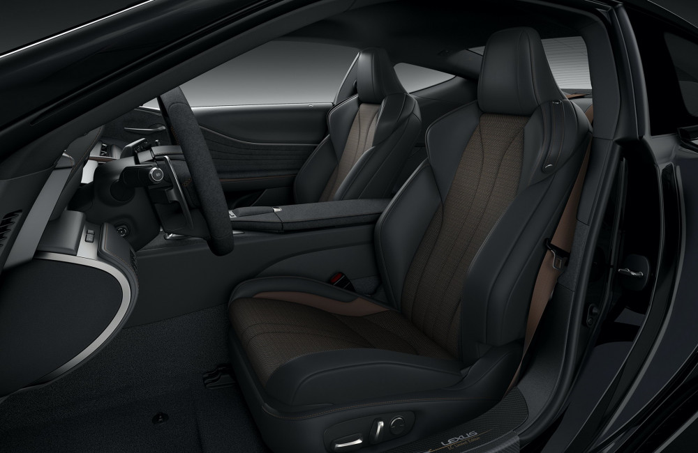 The 2021 LC Inspiration Series was inspired by the world of aviation and aeronautical engineering. Available in Onyx, White Nova or Sonic Silver finish paint, but all will feature black ornamentation on the grille, bumper garnish, side rocker molding, and headlamp surrounds. The vehicle is designed to ride on 21-inch forged black twin-spoken wheels. Its centerpiece also features a carbon fiber fixed rear wing, to allow increase the downforce and make it even more stable at high speeds.