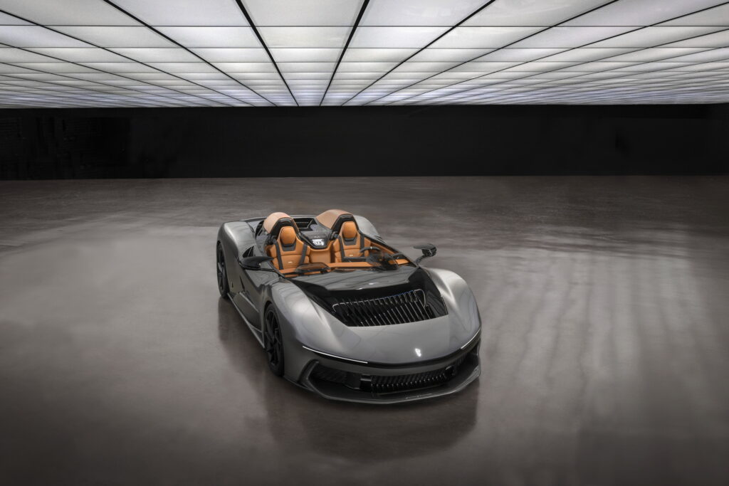 At California’s Monterey Car Week, Automobili Pininfarina will introduce the first of four hypercars inspired by Batman. The electric Pininfarina B95 Gotham takes design cues from the legendary Batman and has a barchetta body built on Rimac subframes.
