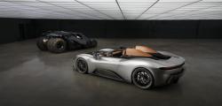 The high-performance Barchetta appears to be the ideal everyday car when parked in the subterranean garage beside the actual Batmobile. The model's exterior is a glossy Argento Vittorio black, while the alloy wheels are a mix of matte and gloss black. Tan leather upholstery with custom quilting and stitching adorns the interior.