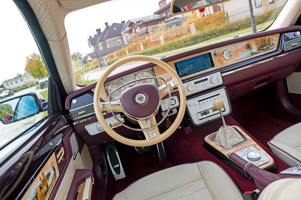 And while the bodywork and exterior changes were made in the workshop Bilenkin Classic Cars, related to the interior, the specialists from the card were concerned. It is due not only wood inserts, bright colors, or leather upholstery fabrics combined with "artisanal", but how they managed to mask high-tech technologies, with classical design from those years. Every detail is carefully worked, and the end result is imposing. It seems that in Russia, a high level of customizing a new level and it is certainly exceeded the expectations of many.