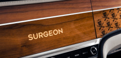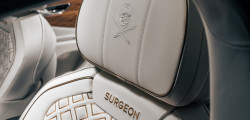 Passengers are also welcomed with "The Surgeon" writing on the outer sill panels and custom LED welcome lighting that projects the skull emblem on the ground. The shoemaker's moniker appears on the seats as well as on one of the faces of the rotating display. Sadly, the asking price for the one-of-a-kind Bentley Flying Spur "The Surgeon" remains a mystery.