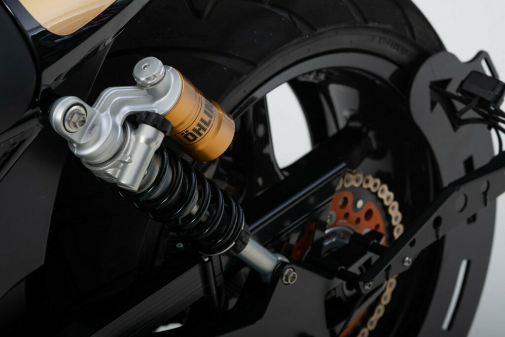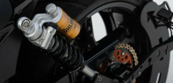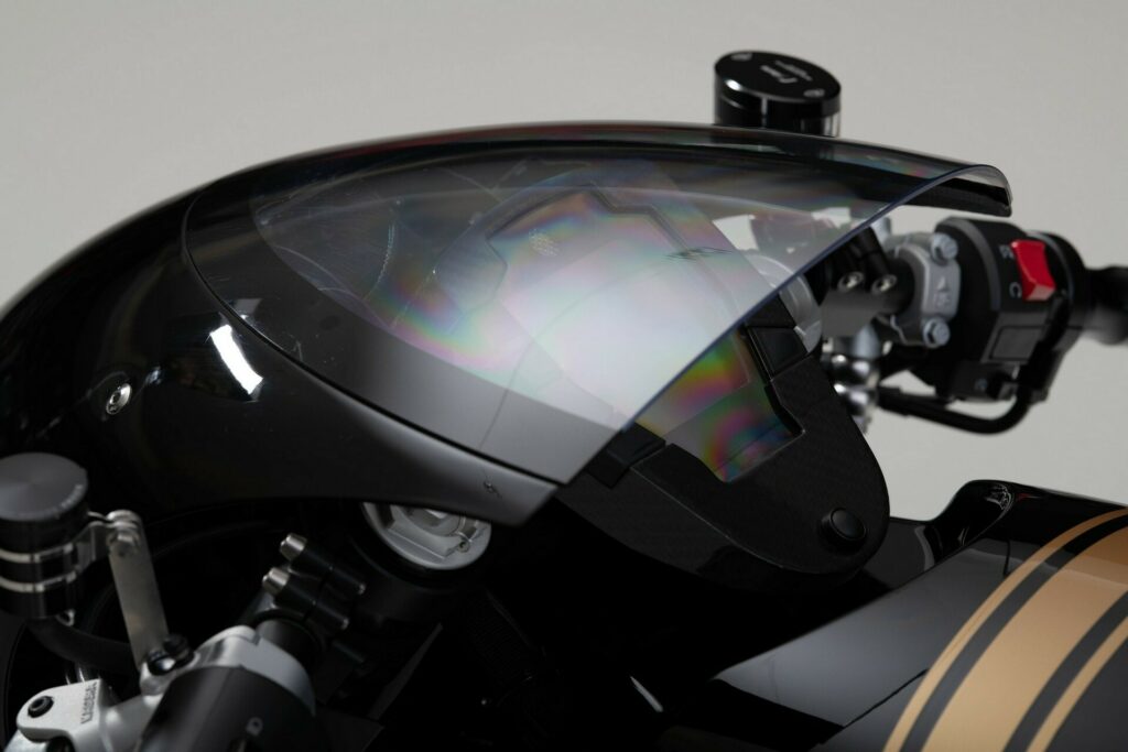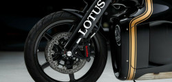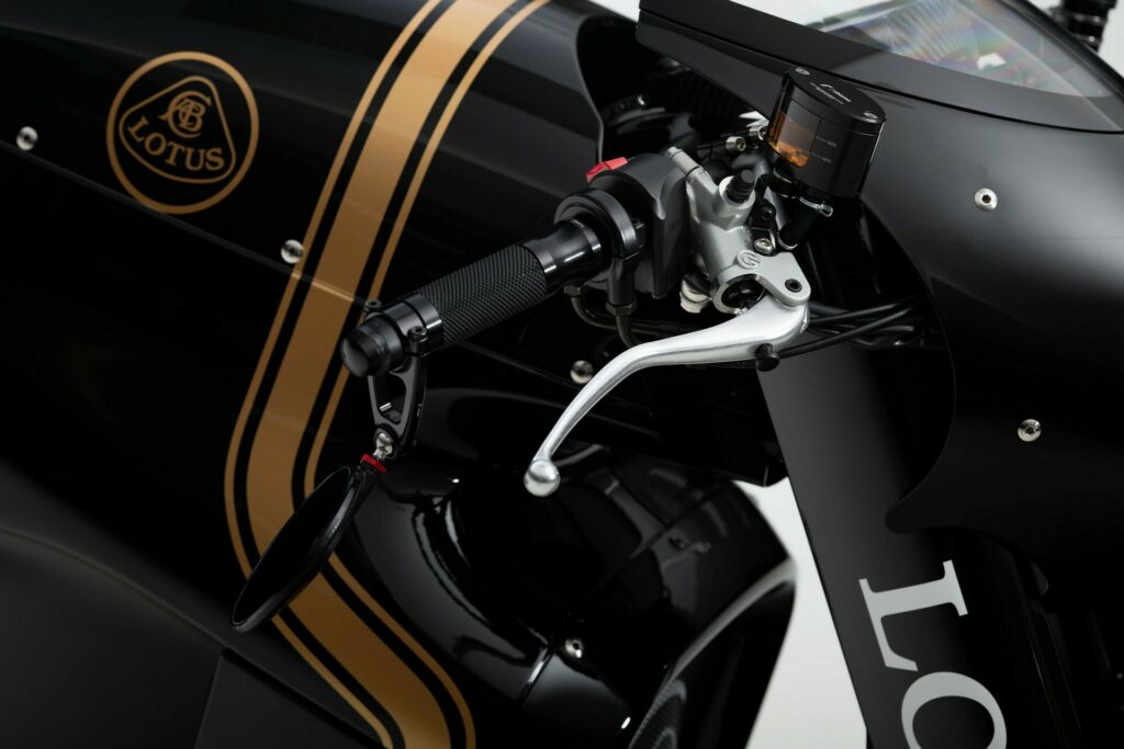 A big headlight cluster graces the front, and thick shrouds with Lotus insignia adorn the front forks. Borrowed from the KTM RC8 R, the 1,195 cc 75-degree V-twin engine forms almost the whole frame of the motorcycle. The combination of this engine and six-speed sequential gearbox produces about 200 horsepower. Meanwhile, the Lotus C-01 weighs less than 400 pounds.