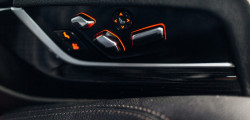 Aside from that, the diffuser, side skirts, front splitter, ducktail spoiler, and broad fender extensions with integrated apertures are all left with visible carbon weave. It's important to keep in mind that the conversion is completely reversible because the standard body panels remain intact beneath the carbon clothing.