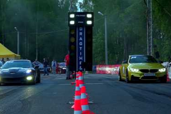A 720hp Corvette in a drag race with a 550hp M4. The two cars weigh about the same so that would seem to put the BMW at a disadvantage against the Corvette, but not so fast, the BMW is not stock and maybe the tuning give it an advantage.