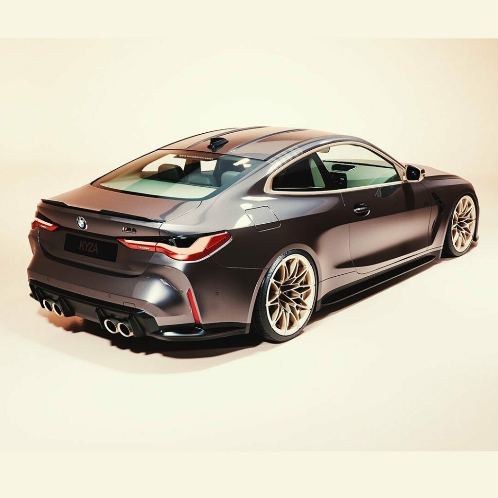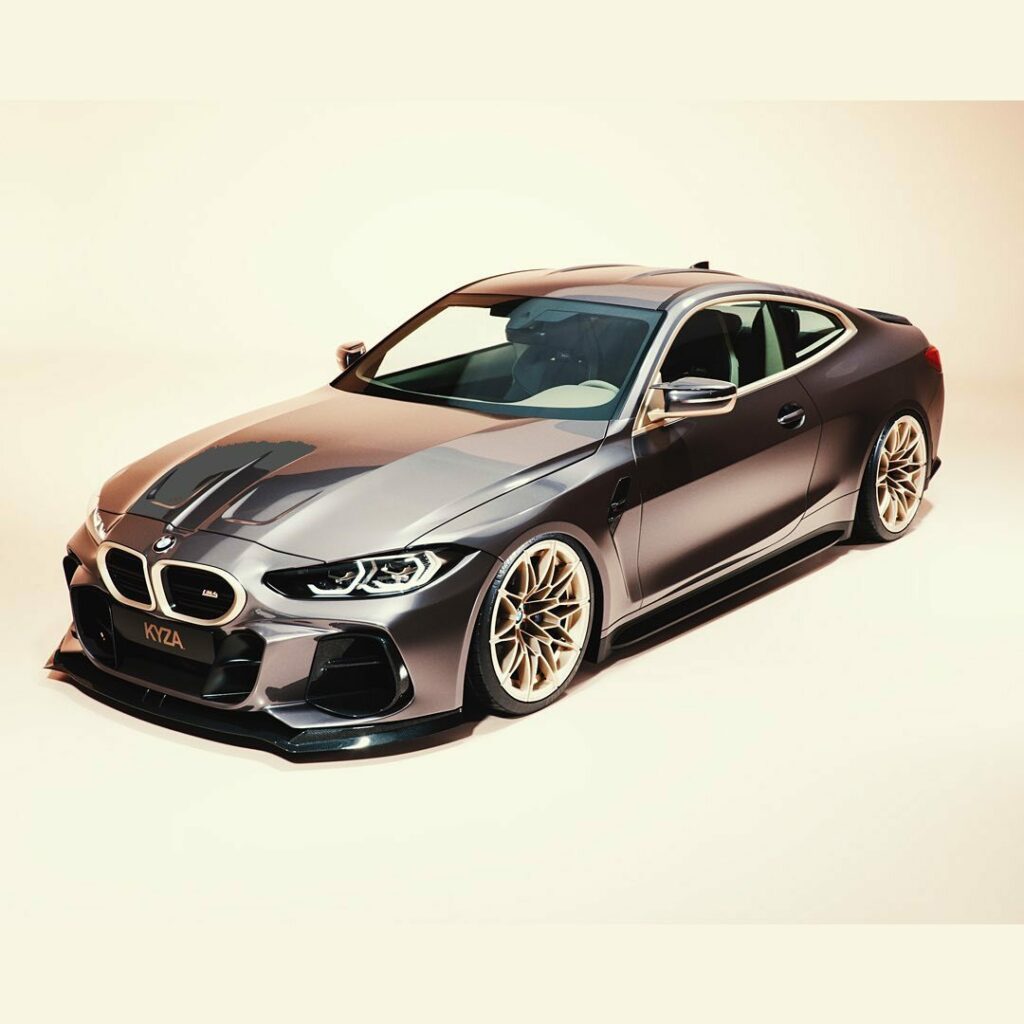 At the front of the BMW M4, the designer has made some modifications by swapping out the larger grilles for more petite ones. Then, the shrouds of these grilles are adorned with a delicate touch of golden hue. Moreover, the car flaunts a significantly accentuated front splitter. In addition to the ride height being decreased, the wheels now feature the same gold finish. Let your own eyes be the final judge of the car's beauty.