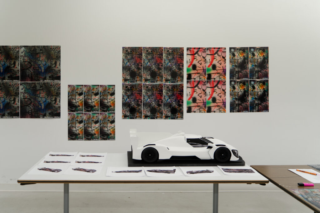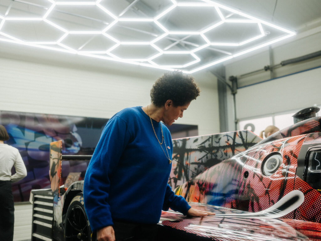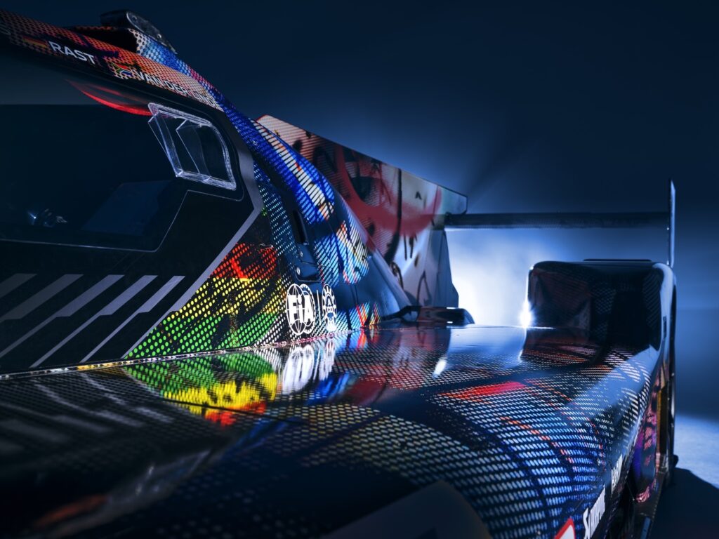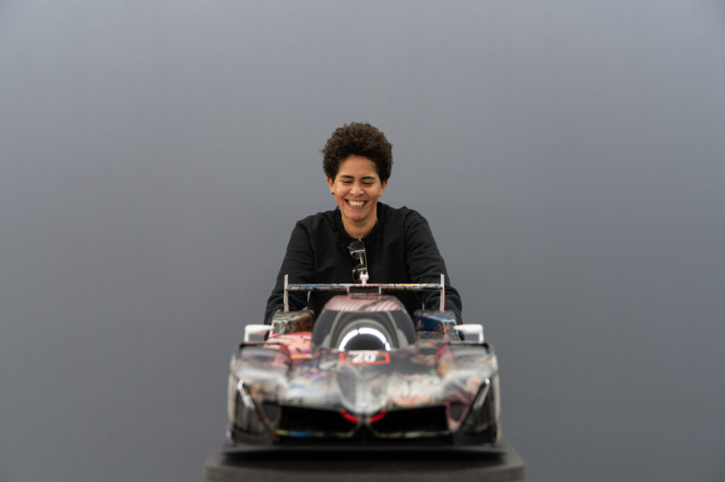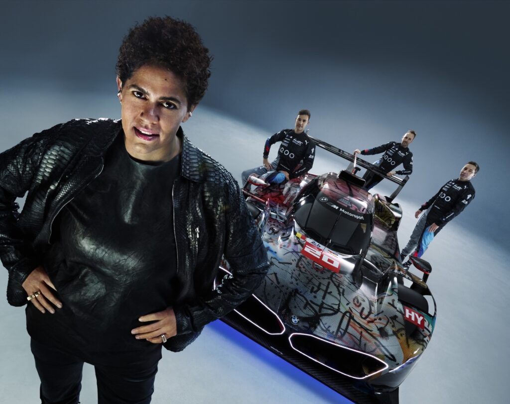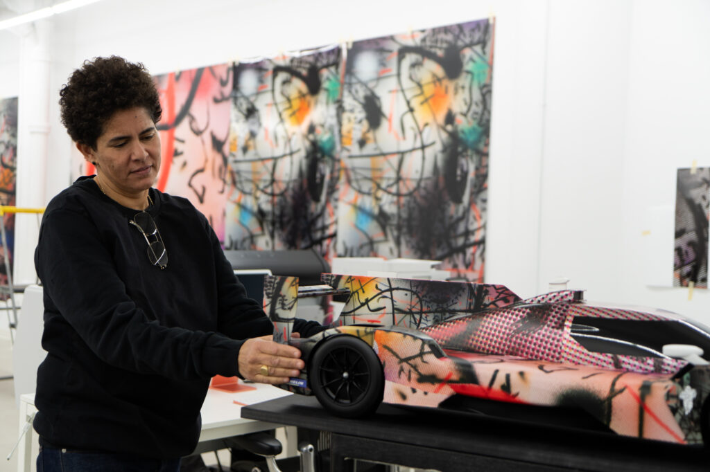 “In the studio where I had the model of the BMW M Hybrid V8, I was just sitting in front of the painting, and I thought, ‘What would happen if this car seemed to go through that painting and becomes affected by it?’” That was what Mehretu was saying. The technique involved using 3D mapping technology to apply the outside foil to the hypercar racer, which had a complex-shaped design.