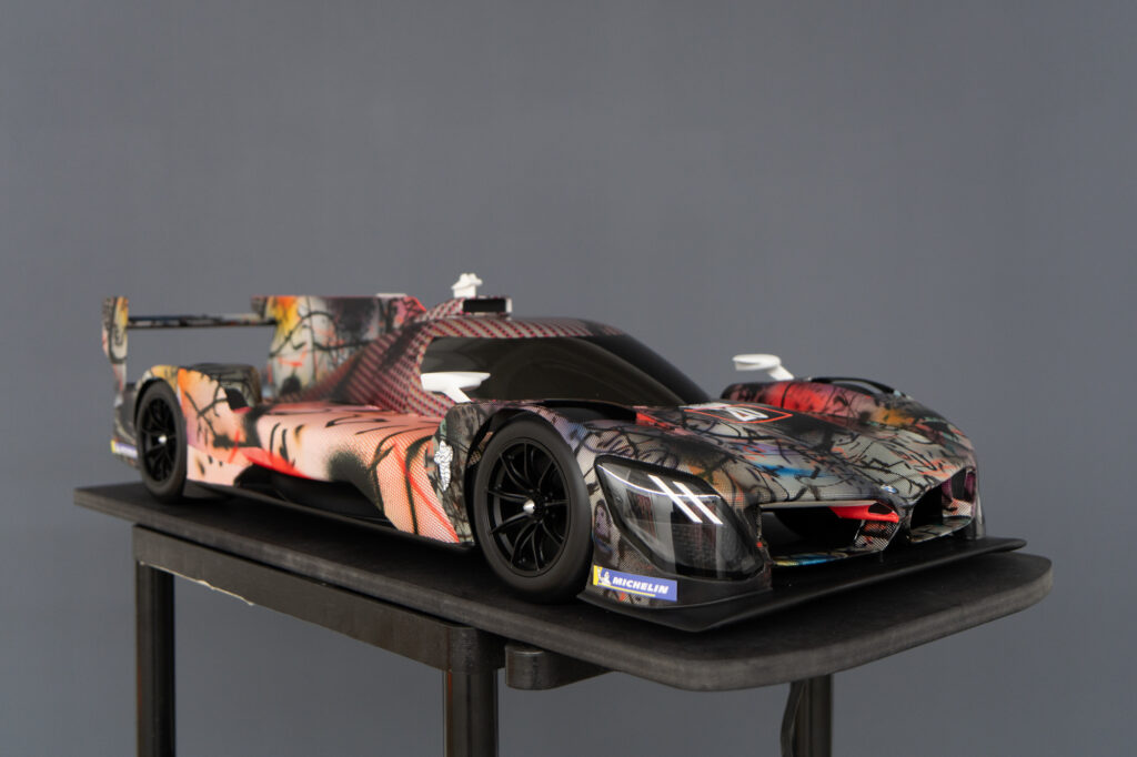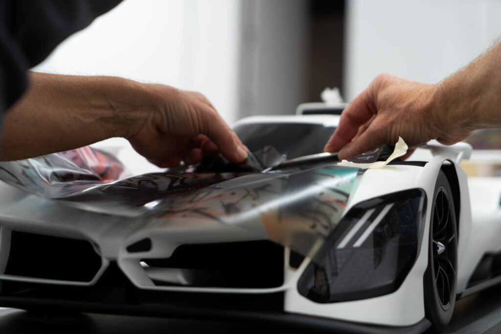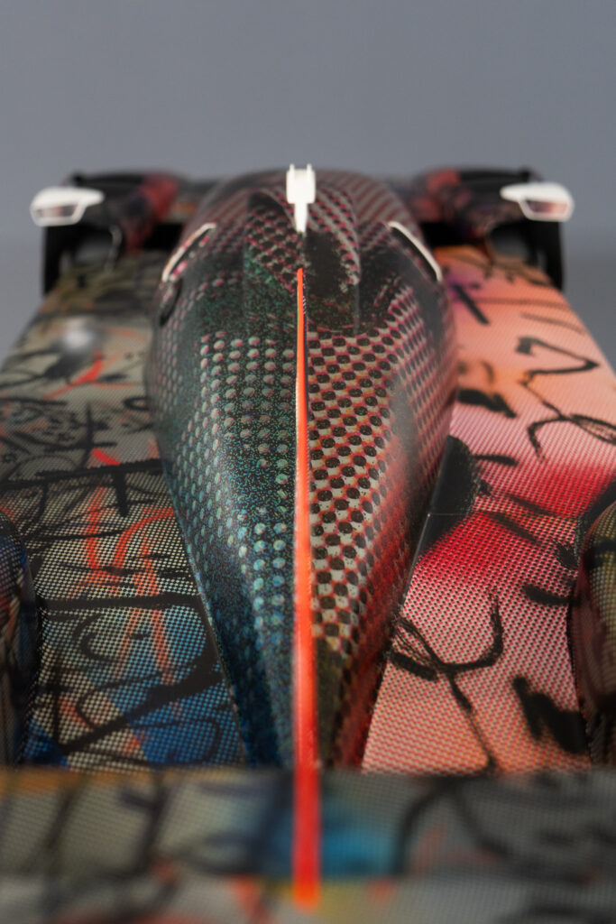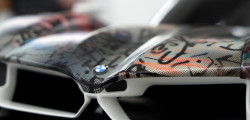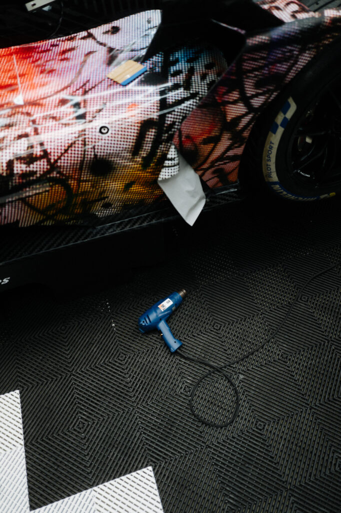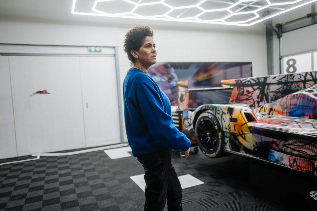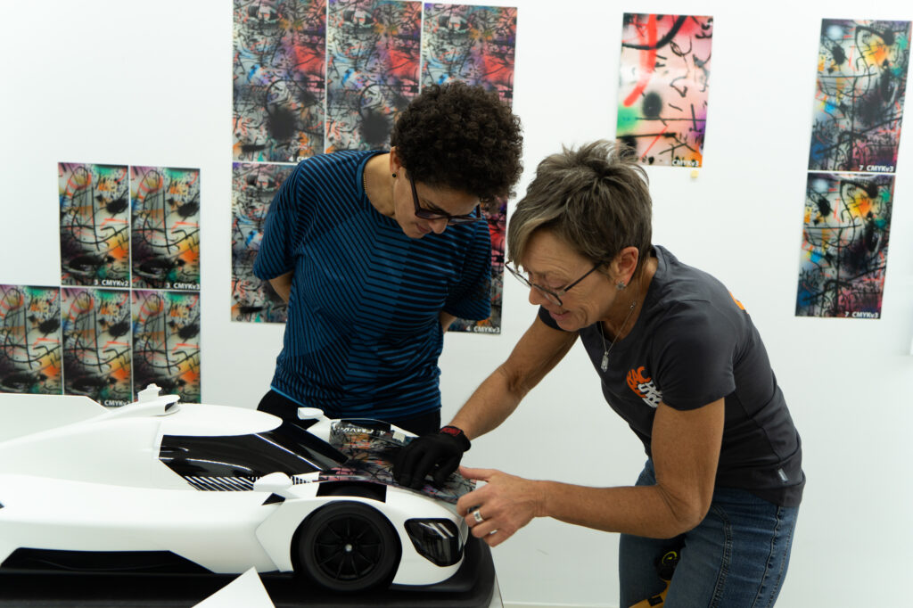 “In the studio where I had the model of the BMW M Hybrid V8, I was just sitting in front of the painting, and I thought, ‘What would happen if this car seemed to go through that painting and becomes affected by it?’” That was what Mehretu was saying. The technique involved using 3D mapping technology to apply the outside foil to the hypercar racer, which had a complex-shaped design.