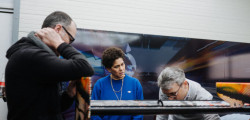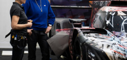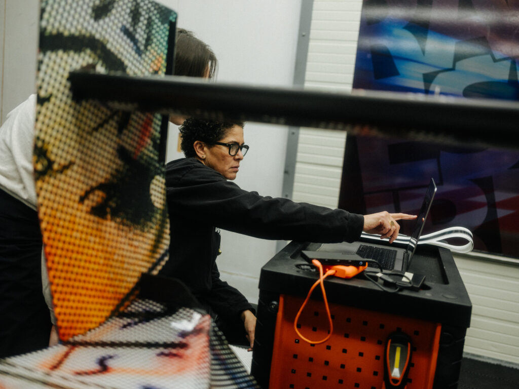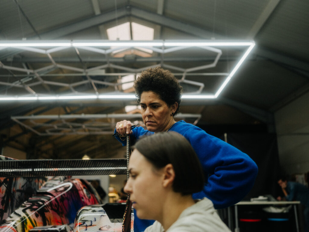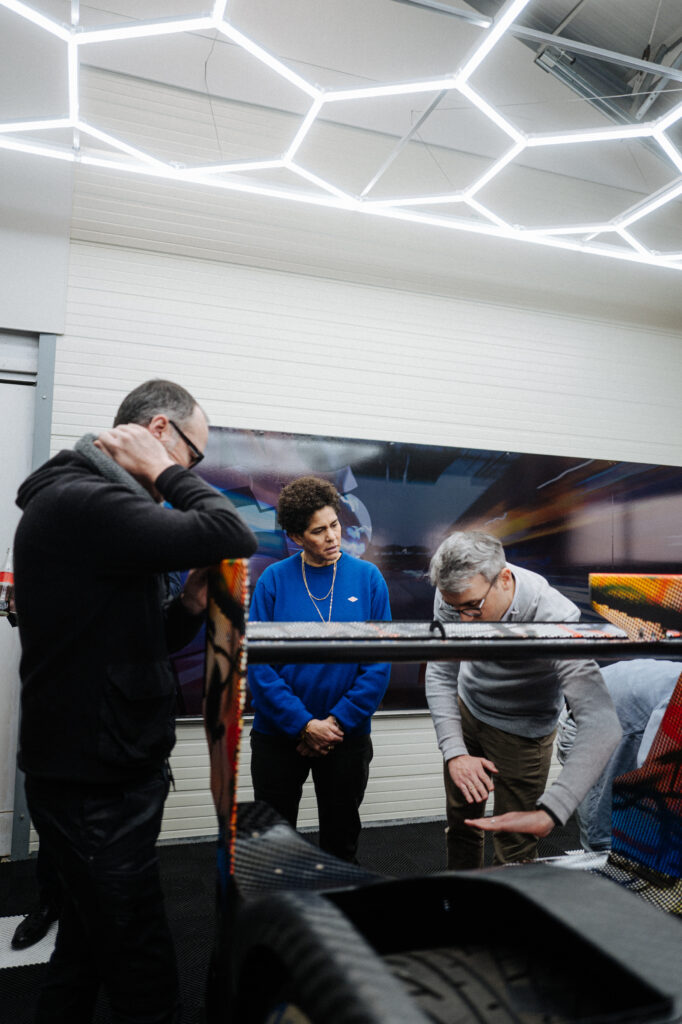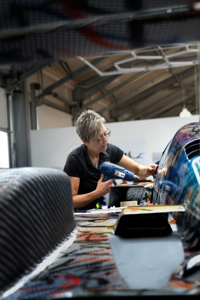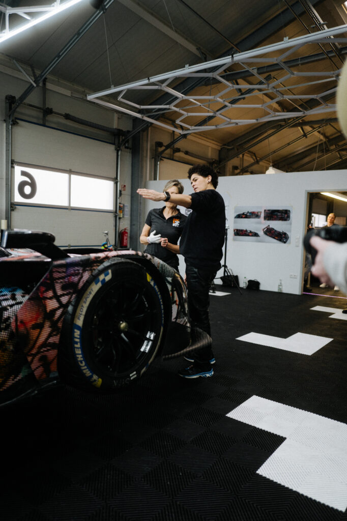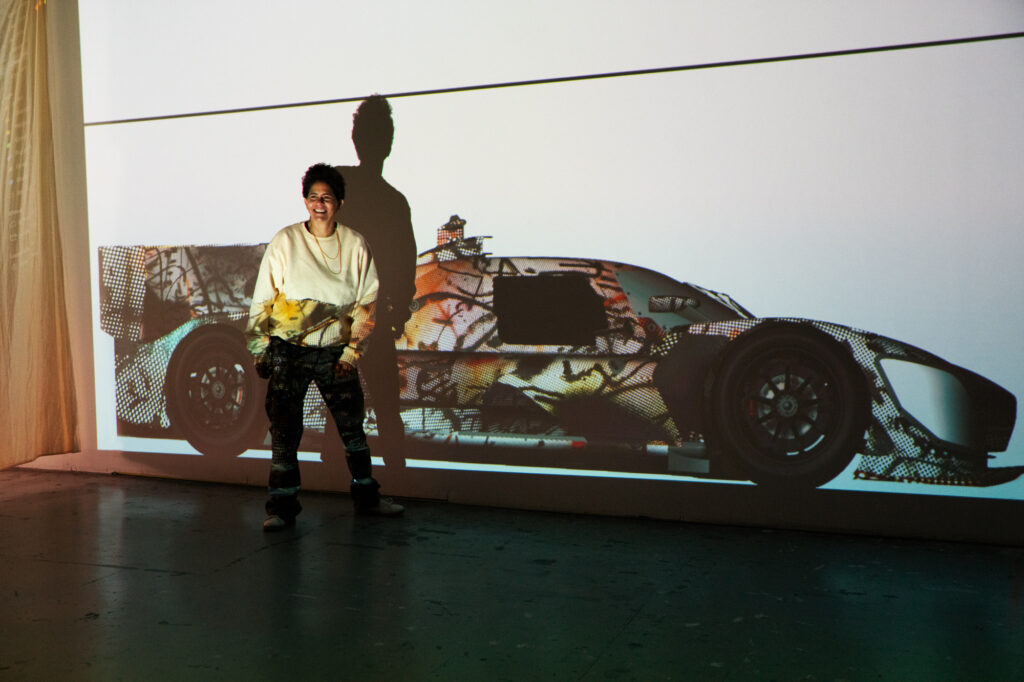 “In the studio where I had the model of the BMW M Hybrid V8, I was just sitting in front of the painting, and I thought, ‘What would happen if this car seemed to go through that painting and becomes affected by it?’” That was what Mehretu was saying. The technique involved using 3D mapping technology to apply the outside foil to the hypercar racer, which had a complex-shaped design.