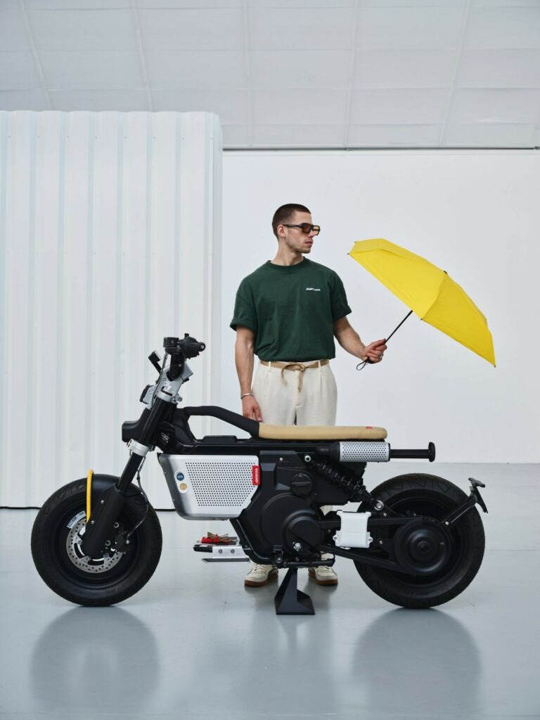 BMW Motorrad has teamed up with Vagabund to create the stylish new CE 02 x Vagabund electric motorbike. While BMW remained mum on the details, the concept features a striking two-tone appearance, a distinctive front fender, a yellow hoop, a tan seat, and cute white wheels.