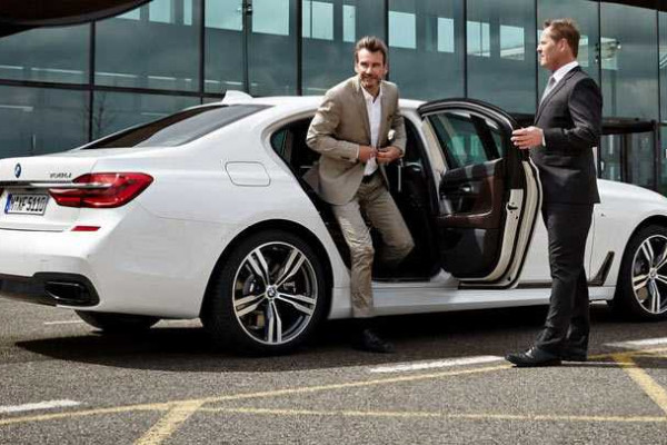 The drivers were BMW people that were driving the passengers while pitching them the new features of the 7 Series. The logic of such a promotional stunt is that the passengers that like or need to be driven (have a driver) will most likely decide to buy the car for their needs. The 2016 BMW 7 Series costs about $82,295.