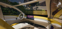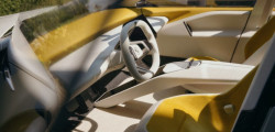 The wheel arches are filled with sleek 21-inch aerodynamic wheels, and the concept car sports a vibrant Joyous Bright color. The 3D-printed taillights add a fascinating dimension to the vehicle's profile. Inside, BMW adopts an eco-friendly approach by using cord fabric instead of leather. The front seats are designed to maximize interior space and are mounted to the floor using a single bracket.
